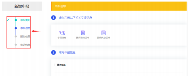 3.申報根據(jù)屏幕左側(cè)的流程依次進行。