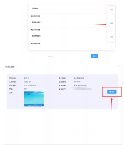 7.點擊選擇即可選擇您所填寫的專項信息,請確認信息的正確性后點擊選擇,依次完成所有專項信息的選擇后點擊保存進入下一步。
