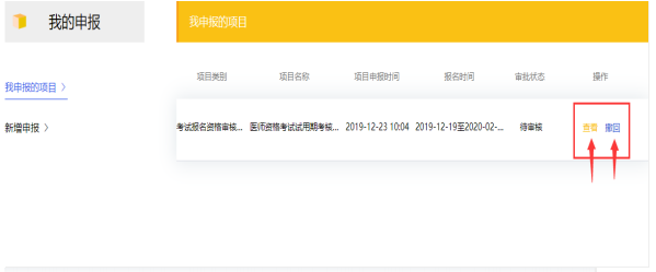 11.點擊申報項目的查看即可查看您所填寫的申報信息,如您發(fā)現(xiàn)信息有誤,請撤回項目進行修改后再進行提交操作。