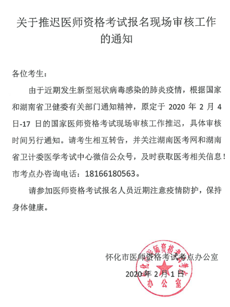 懷化市推遲2020年中醫(yī)助理醫(yī)師資格考試報名現(xiàn)場審核時間通知