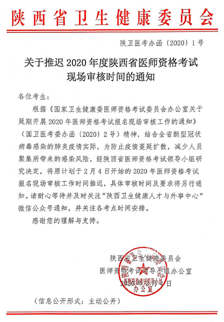 國(guó)家衛(wèi)健委關(guān)于延期開(kāi)展2020年醫(yī)師資格考試報(bào)名現(xiàn)場(chǎng)審核工作的通知