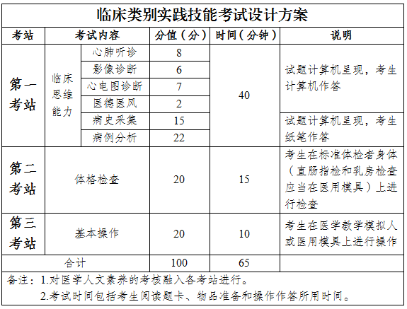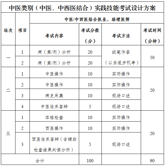 2.按照《國家衛(wèi)生健康委員會醫(yī)師資格考試委員會關(guān)于印發(fā)醫(yī)師資格考試實(shí)踐技能考試實(shí)施方案(臨床類別,中醫(yī)類別中醫(yī)、中西醫(yī)結(jié)合)(2020年版)的通知》(國衛(wèi)醫(yī)考委發(fā)〔2020〕5號)要求,對臨床類別和中醫(yī)類別(中醫(yī)、中西醫(yī)結(jié)合專業(yè))實(shí)踐技能考試方案進(jìn)行了修訂,新修訂的考試設(shè)計方案為: