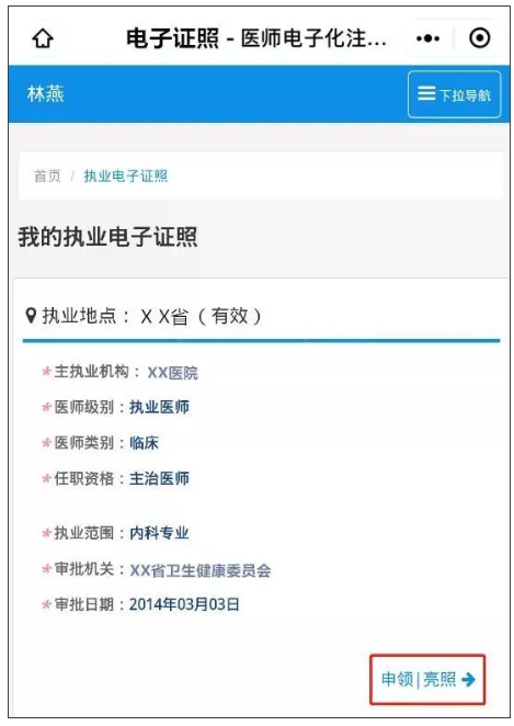 ⑥符合申領(lǐng)醫(yī)師電子證照條件,直接亮照成功(不需要醫(yī)療機(jī)構(gòu)進(jìn)行審核)。