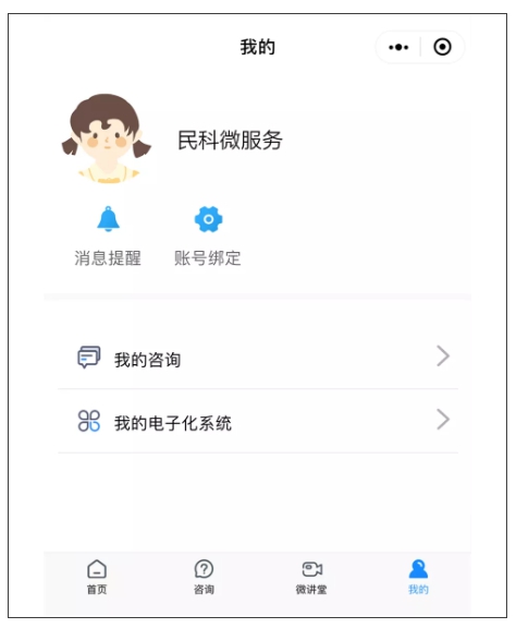 ②在民科微服務(wù)小程序【我的】中,點擊【我的電子化系統(tǒng)】;