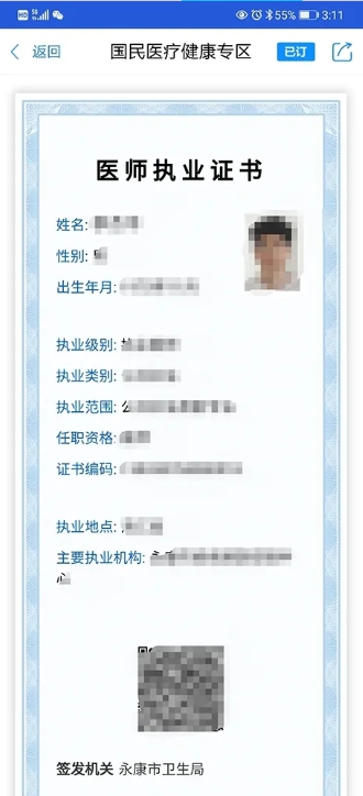 中醫(yī)執(zhí)業(yè)助理醫(yī)師電子證照申領(lǐng)步驟/醫(yī)師電子證照樣式圖