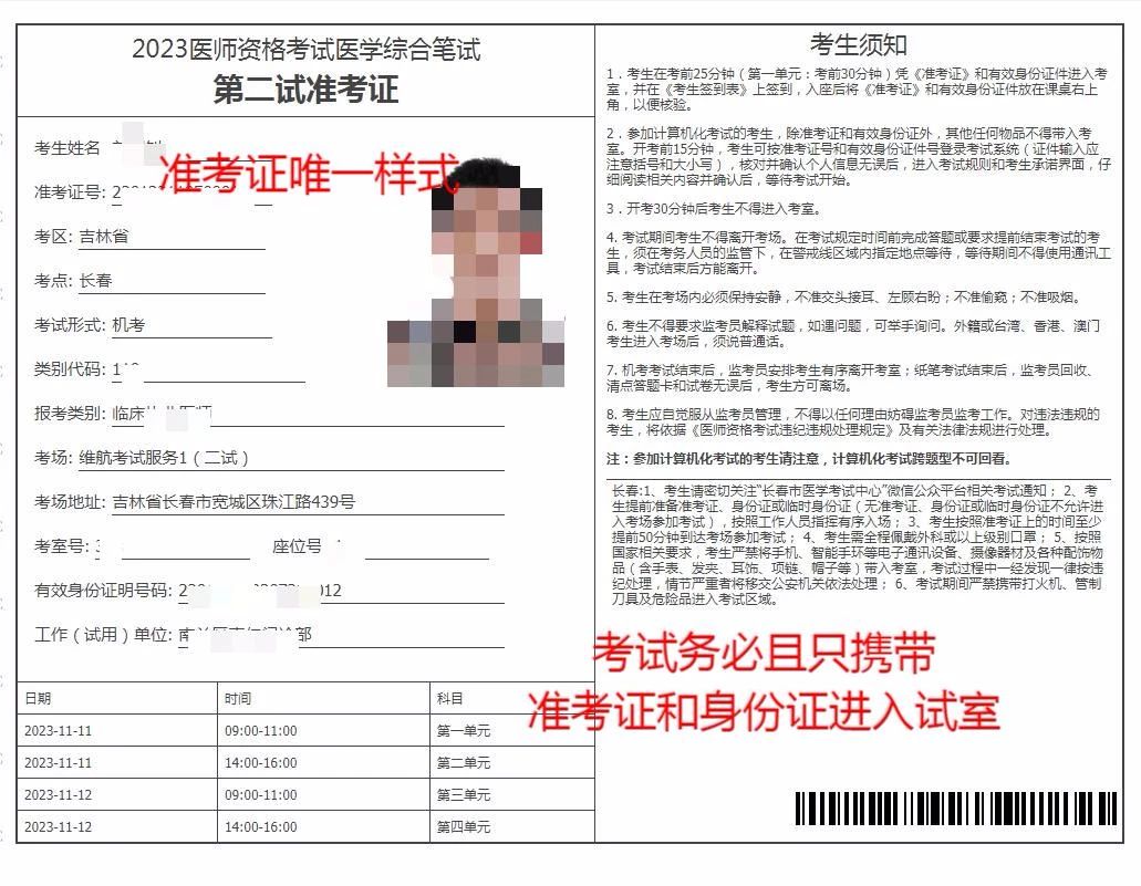 吉林省長春考點2023年中醫(yī)助理醫(yī)師資格“一年兩試”準(zhǔn)考證打印通知