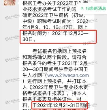 近日,有網(wǎng)傳消息稱2022年主管護(hù)師考試網(wǎng)上報名時間為12月20日-30日、現(xiàn)場確認(rèn)時間為12月21日-31日。