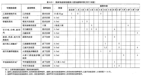 兒童計(jì)劃免疫程序參見表(2023年整體變化)