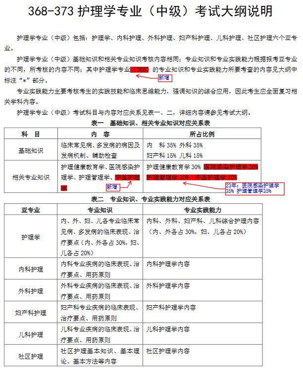 2024年主管護(hù)師368-373護(hù)理學(xué)(中級(jí))考試大綱(變化)