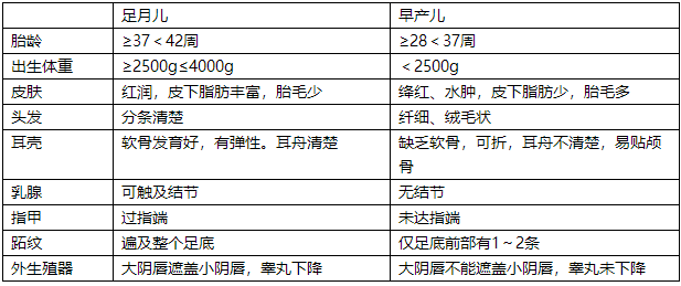 足月兒與早產(chǎn)兒的鑒別表