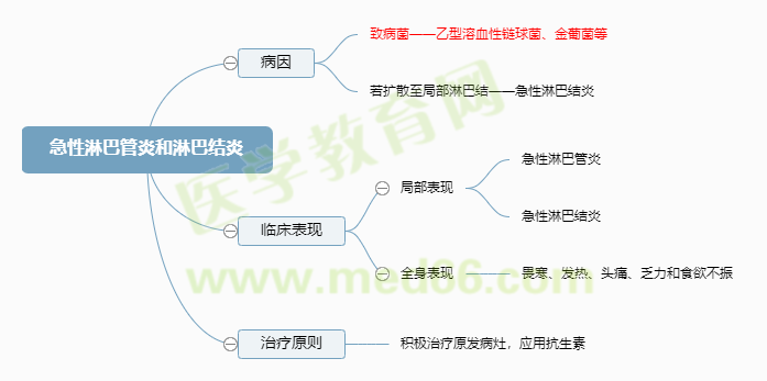 2022主管護(hù)師考試科目繁多、內(nèi)容繁雜,需要記憶的知識(shí)點(diǎn)有很多。對(duì)于怎么梳理考點(diǎn),快速記住考點(diǎn)是眾多學(xué)員關(guān)注的問(wèn)題,醫(yī)學(xué)教育網(wǎng)小編為大家整理總結(jié)了急性淋巴管炎和淋巴結(jié)炎思維導(dǎo)圖,幫助大家快速理清考試內(nèi)容。