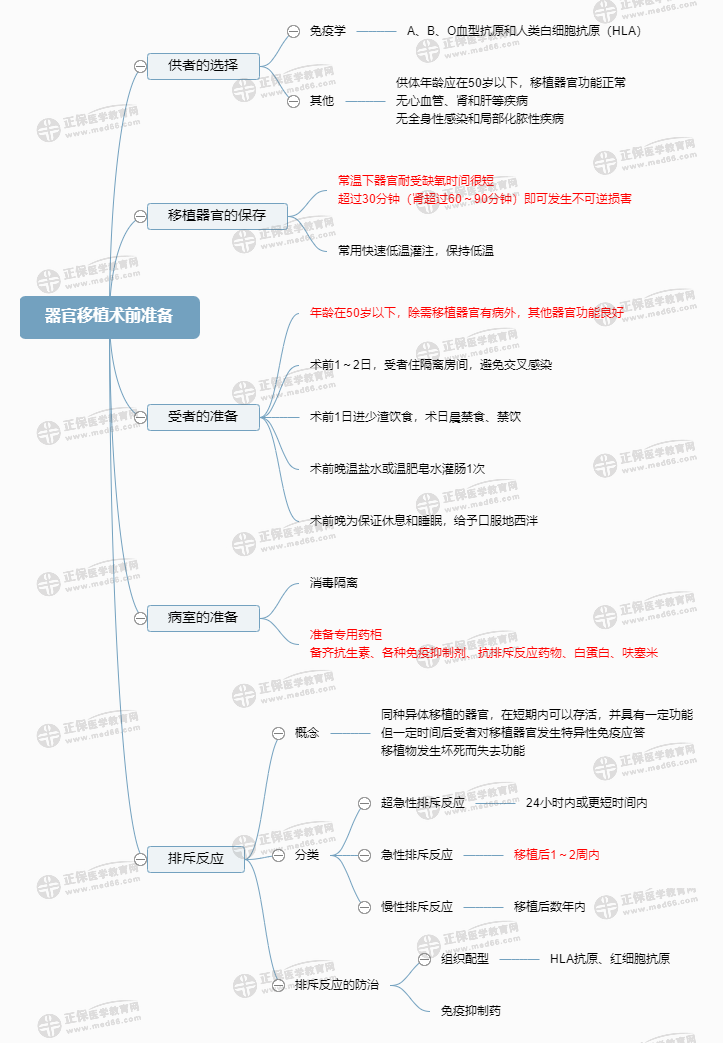 主管護(hù)師考試科目繁多、內(nèi)容繁雜,需要記憶的知識(shí)點(diǎn)有很多。對(duì)于怎么梳理考點(diǎn),快速記住考點(diǎn)是眾多學(xué)員關(guān)注的問題,醫(yī)學(xué)教育網(wǎng)小編為大家整理總結(jié)了器官移植術(shù)前準(zhǔn)備思維導(dǎo)圖,幫助大家快速理清考試內(nèi)容。