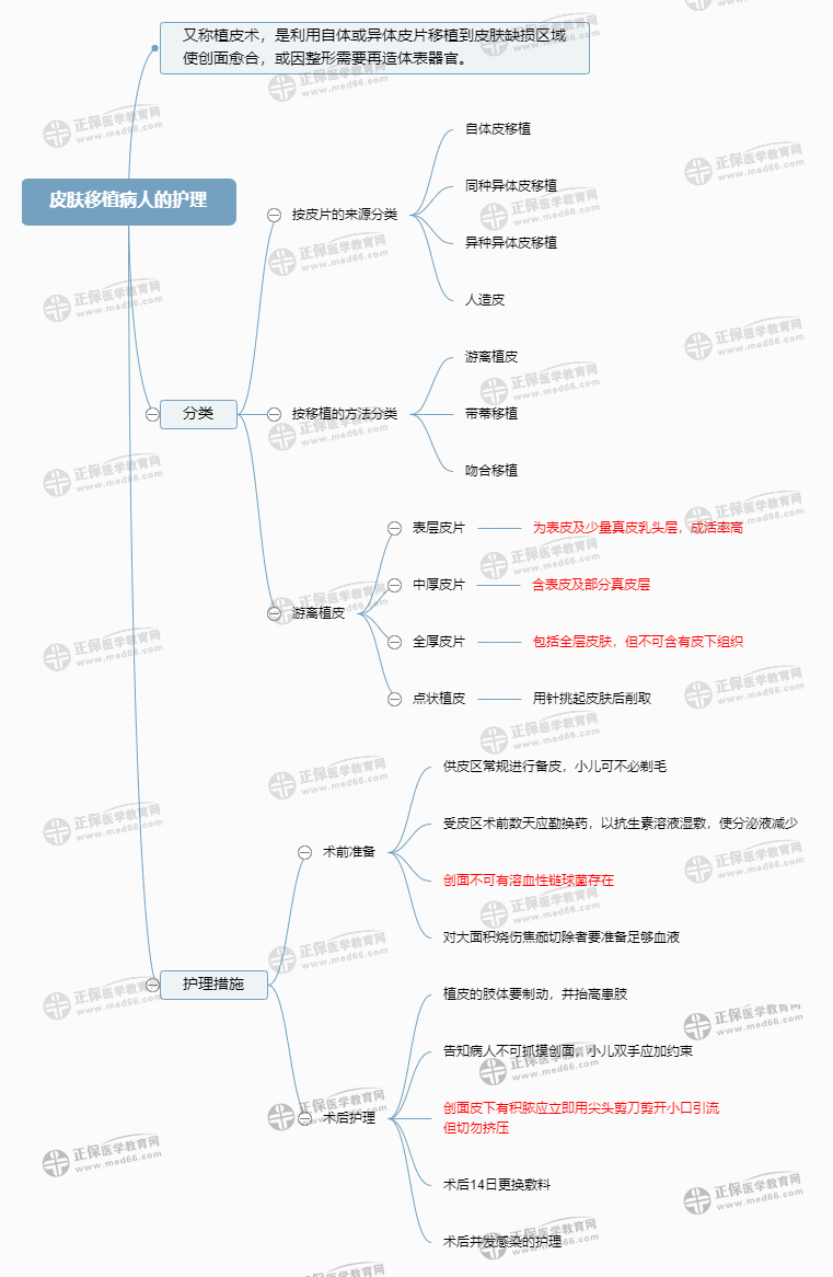 為了能夠更好地幫助大家理清思路,快速的記住考點(diǎn),醫(yī)學(xué)教育網(wǎng)小編嘔心瀝血,終于將皮膚移植病人的護(hù)理知識點(diǎn)做成了思維導(dǎo)圖分享給各位同學(xué),希望能夠幫助到各位考生。