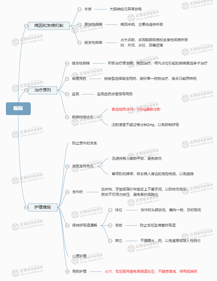 為了幫助各位考生更好的備考復(fù)習(xí)主管護(hù)師考試,醫(yī)學(xué)教育網(wǎng)小編將癲癇病人的護(hù)理知識(shí)點(diǎn)做成了思維導(dǎo)圖的形式,同學(xué)們快來(lái)收藏學(xué)習(xí)吧!
