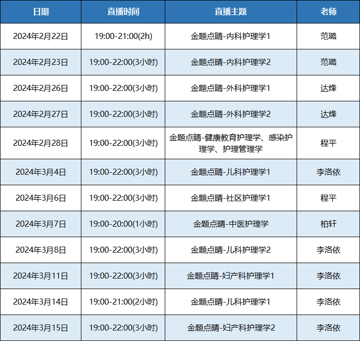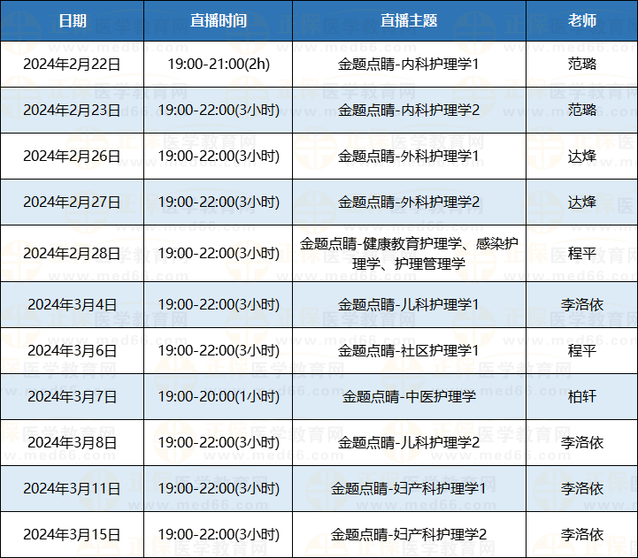 2024年主管護(hù)師《金題點(diǎn)睛班》直播課表