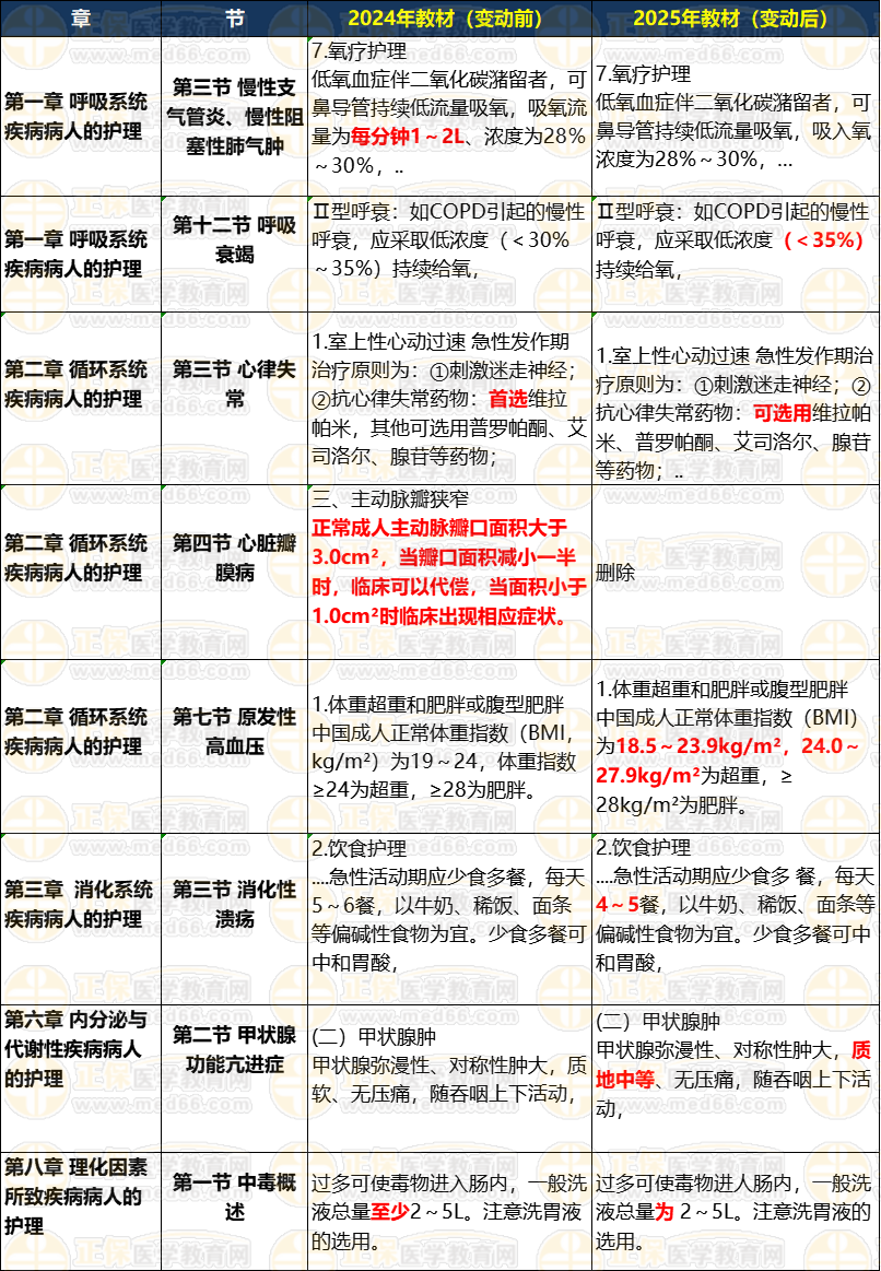 2025年主管護師《內(nèi)科護理學》教材公布了,經(jīng)過醫(yī)學教育網(wǎng)專業(yè)人員校對,發(fā)現(xiàn)如下變化內(nèi)容??旄【幰黄鹂纯?!