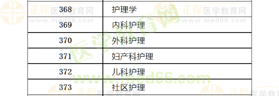 由上圖即可看出代碼368代表的是護(hù)理學(xué)專業(yè),369代表的是內(nèi)科護(hù)理專業(yè),依此類推。