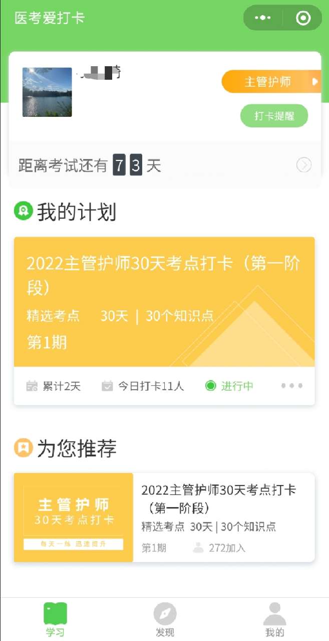 第三步:請選擇“您的備考計劃”,如“2022主管護師30天精選考點打卡(第一階段)”,點擊下方“加入計劃開始學習”