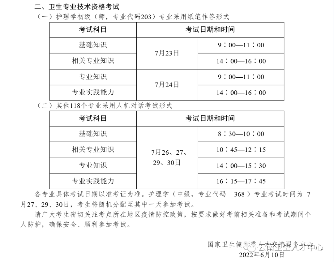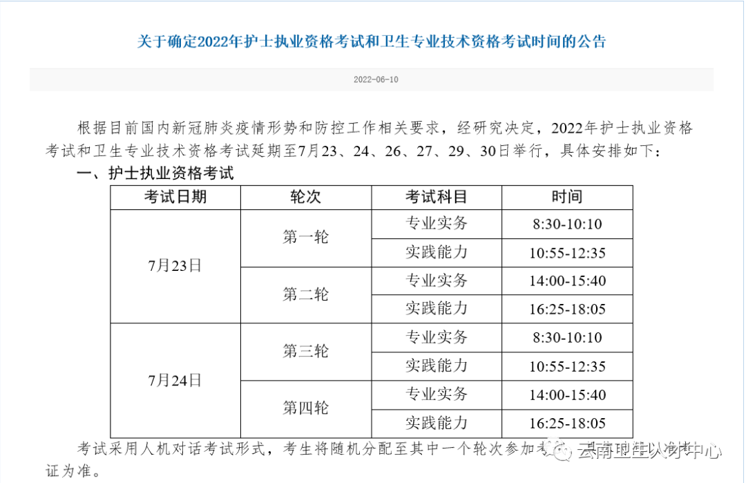 安寧市關(guān)于確定2022年主管護師考試時間的公告