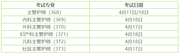 2021年主管護師考試各專業(yè)具體考試日期如下: