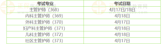 2021年主管護師考試各專業(yè)具體考試日期如下: