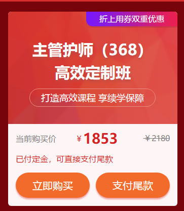 高效定制班最后一波優(yōu)惠!主管護師85折優(yōu)惠倒計時!