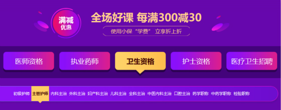 2020年主管護(hù)師課程均參與滿減活動,可與小保學(xué)費疊加使用,優(yōu)惠享不停~