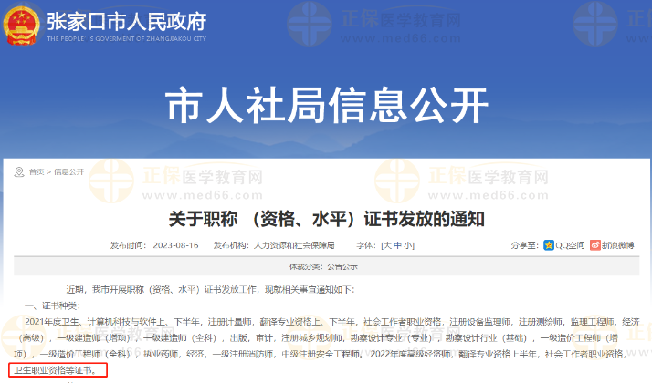 張家口人民政府發(fā)布關(guān)于主管護師證書發(fā)放的通知,醫(yī)學(xué)教育網(wǎng)整理具體內(nèi)容如下: