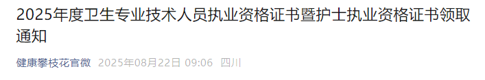 攀枝花關(guān)于領(lǐng)取2025年度初級護師證書的通知