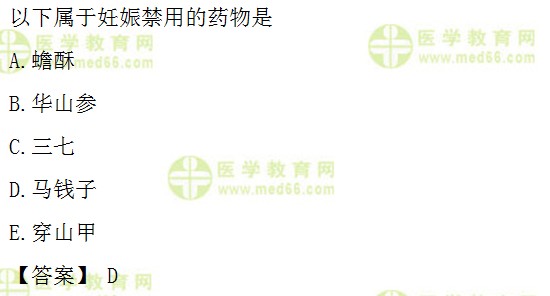 (2)妊娠慎用藥:蟾酥、華山參、硫黃、干漆片、姜黃、急性子、瞿麥、制川烏、制草烏、番瀉葉、白附子、枳實、三七、大黃、王不留行、西紅花、紅花、肉桂、蘇木、虎杖、卷柏、漏蘆、禹州漏蘆、穿山甲、桃仁、凌霄花、牛膝、蒲黃、郁李仁、枳殼、天南星、冰片、草烏葉、禹余糧、常山、赭石、關白附、干蟾、菊三七。故ABCE屬于妊娠慎用藥,D屬于妊娠禁用藥,故本題答案選D。[醫(yī)學教育網(wǎng)原創(chuàng)]