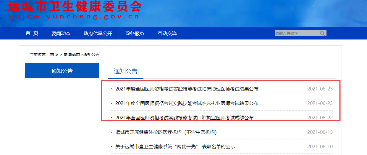 運(yùn)城市實(shí)踐技能考試成績(jī):https://wsjkw.yuncheng.gov.cn/wsjkyw/tzgg/index.shtml