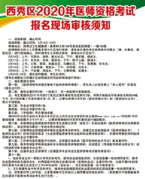 2020年貴州省安順市西秀區(qū)執(zhí)業(yè)助理技能考試報名現場審核時間通知