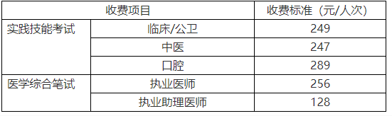 根據(jù)《國家醫(yī)學(xué)考試中心關(guān)于調(diào)整醫(yī)師資格考試考務(wù)費用標準的通知》(國醫(yī)考發(fā)(2016)87號)等相關(guān)文件規(guī)定,收費標準如下: