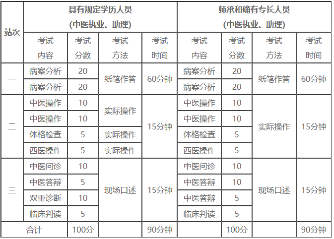 (1)考試內(nèi)容:基本操作技能,包括中醫(yī)臨床技術(shù)操作、體格檢查及西醫(yī)臨床技術(shù)操作。