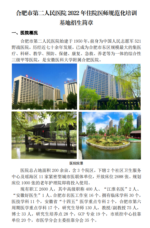 相關(guān)附件:合肥市第二人民醫(yī)院2022年住院醫(yī)師規(guī)范化培訓(xùn)招生簡(jiǎn)章