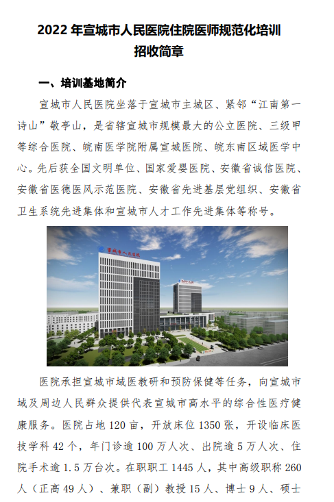 相關附件:宣城市人民醫(yī)院2022年住院醫(yī)師規(guī)范化培訓招生簡章
