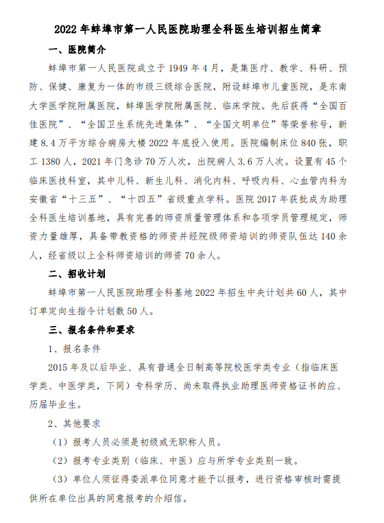 相關(guān)附件:蚌埠市第一人民醫(yī)院2022年住院醫(yī)師規(guī)范化培訓(xùn)招生簡章