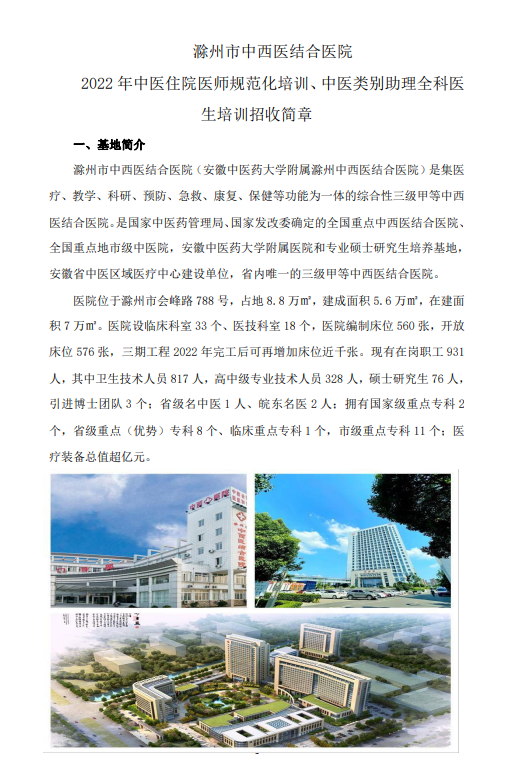 相關(guān)附件:滁州市中西醫(yī)結(jié)合醫(yī)院2022年住院醫(yī)師規(guī)范化培訓(xùn)招生簡章