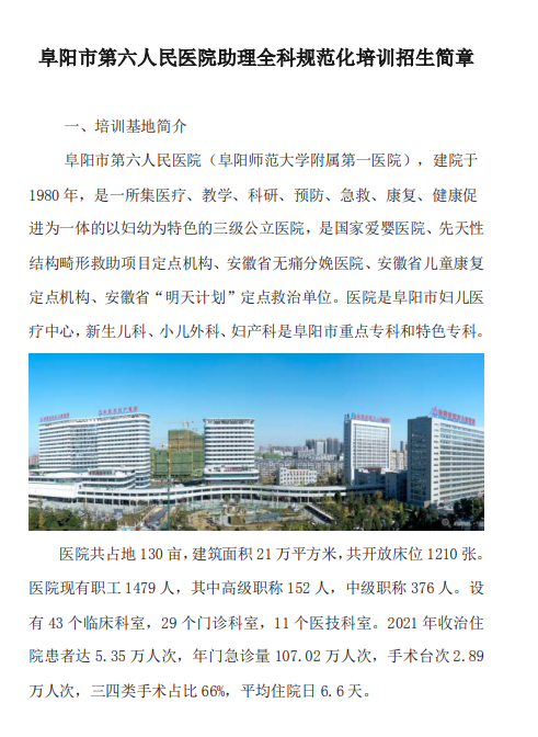 相關附件:阜陽市第六人民醫(yī)院2022年住院醫(yī)師規(guī)范化培訓招生簡章