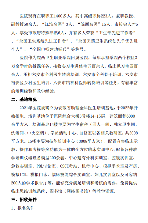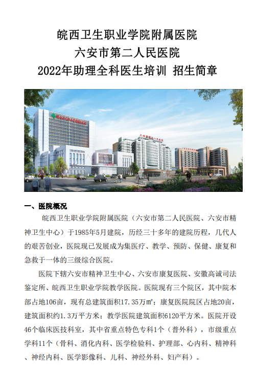 相關(guān)附件:六安市第二人民醫(yī)院2022年住院醫(yī)師規(guī)范化培訓招生簡章