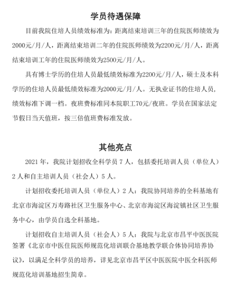 認真完成住院醫(yī)師規(guī)范化培訓,做一名白求恩式醫(yī)務工作者。希望“中國中醫(yī)科學院西苑醫(yī)院中醫(yī)2021年北京市住院醫(yī)師規(guī)范化培訓招生簡章”的內容對您有所幫助哦!