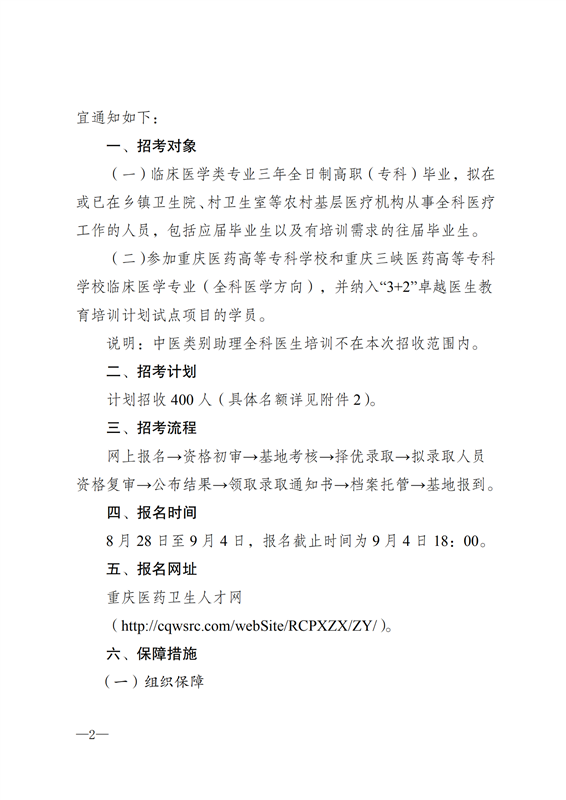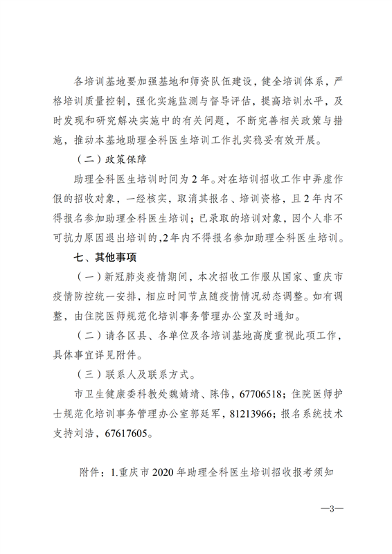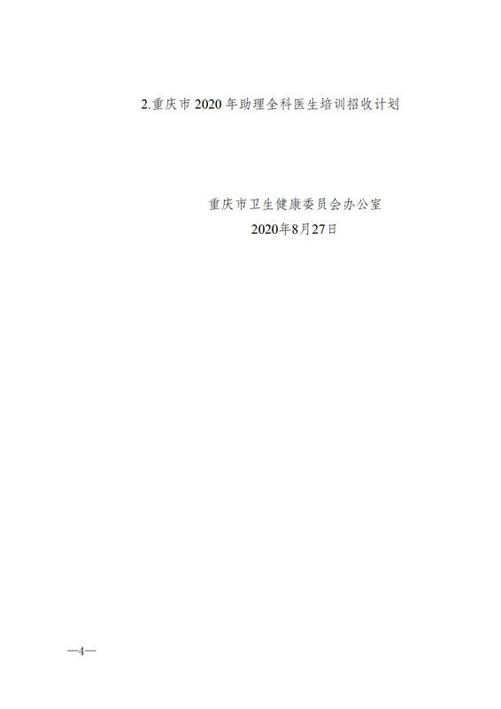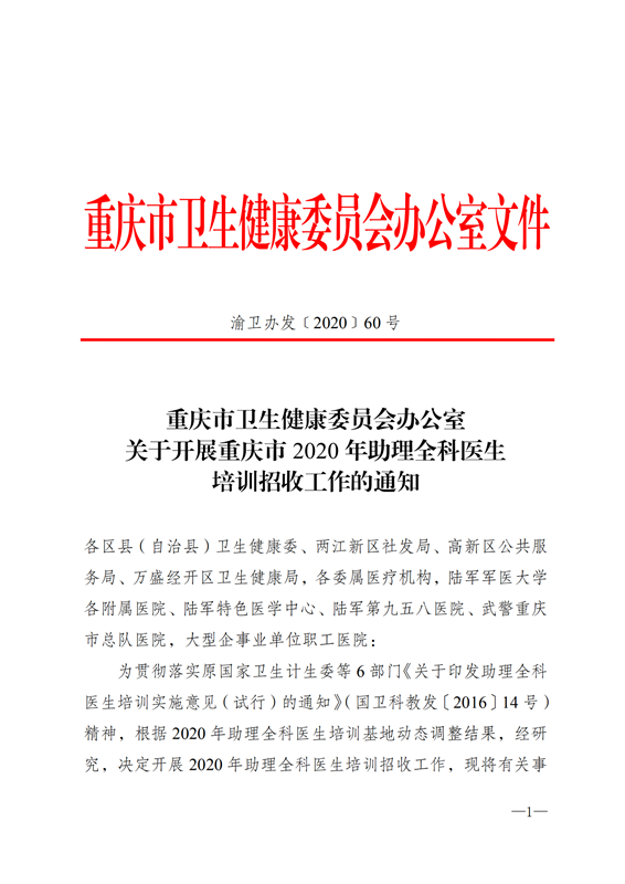 關(guān)于開(kāi)展重慶市2020年助理全科醫(yī)生培訓(xùn)招收工作的通知