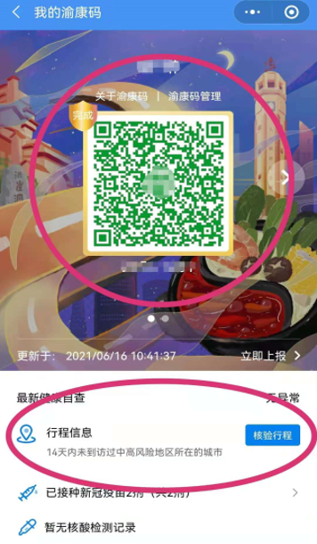 所有來院考生需提供7月21日渝康碼彩色打印紙質(zhì)件:要求必須為“綠碼”且“14天內(nèi)未到過中高風險地區(qū)所在城市”。(微信搜索小程序“重慶健康出行一碼通”→我的渝康碼→核驗行程→截圖彩色打印,如圖所示)??忌粲邪l(fā)熱干咳等癥狀請?zhí)崆皥髠洹?/p>