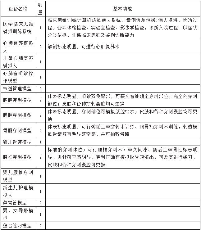 (3)有臨床技能模擬訓(xùn)練中心,具備可滿足教學(xué)、實(shí)踐操作等使用的臨床技能訓(xùn)練模擬設(shè)備,見表1。