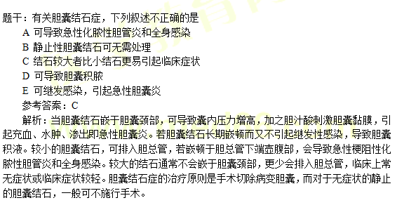 C 肝外膽管結(jié)石占全部膽石的10%,多位于肝總管或膽管上段