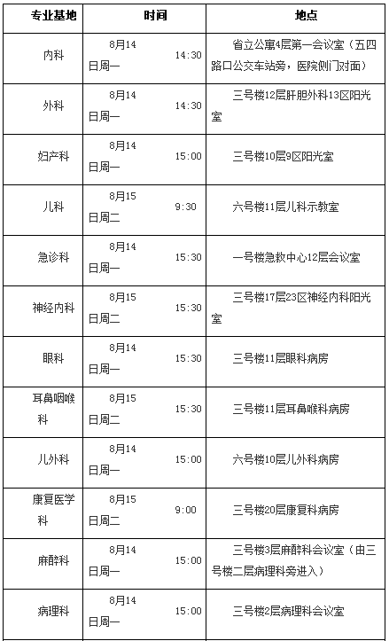 各專業(yè)基地的面試時(shí)間、招生規(guī)模和地點(diǎn)如下: