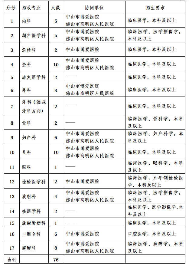 注:全科、麻醉科、婦產(chǎn)科、兒科、急診科專業(yè)不受招生計(jì)劃人數(shù)限制。