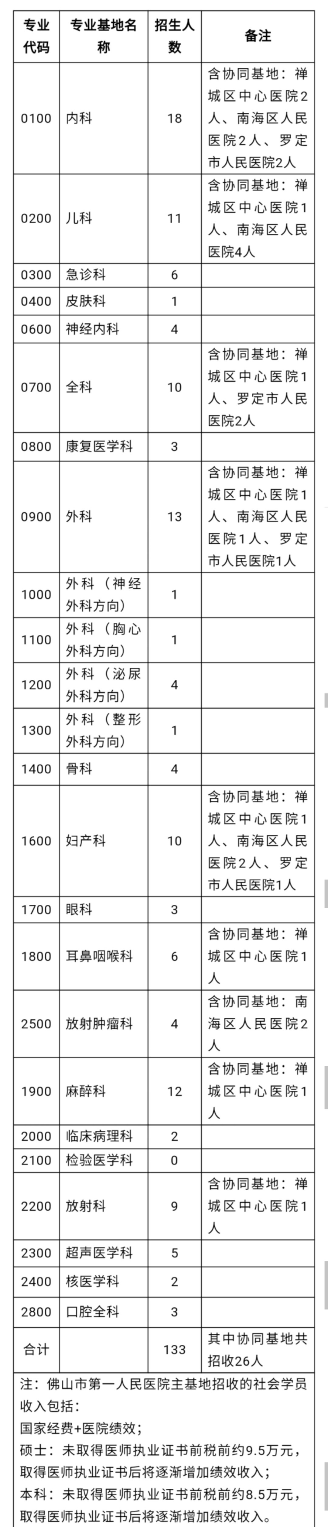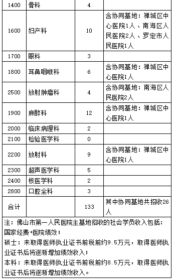 注:佛山市第一人民醫(yī)院主基地招收的社會(huì)學(xué)員收入包括: