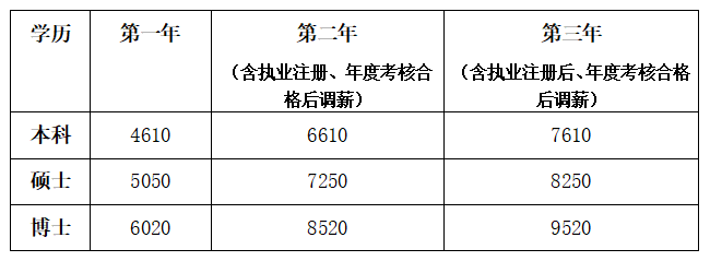 ②、執(zhí)業(yè)注冊(cè)后,本科增加生活補(bǔ)助1000元/月、碩士增加生活補(bǔ)助1200元/月、博士增加生活補(bǔ)助1500元/月,已計(jì)算在上述金額里。