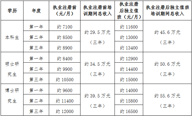 (1)社會(huì)學(xué)員待遇:每月按時(shí)發(fā)放待遇,包含崗位工資,薪級(jí)工資,基礎(chǔ)性績(jī)效,效能工資,專項(xiàng)補(bǔ)貼,單位繳納部分的社會(huì)保險(xiǎn)、住房公積金(即“五險(xiǎn)一金”),年終核增績(jī)效等;取得執(zhí)業(yè)醫(yī)師資格在我院注冊(cè)并獨(dú)立值班的學(xué)員,可按一定比例享受我院住院醫(yī)師的效率工資,待遇如下: